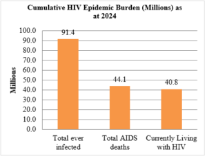 Of the 91.4 million people ever infected with HIV, 44.1 million have already died — and today, 40.8 million are still living with the virus, with 1.3 million new infections recorded in 2024 alone